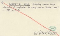 KAWECKI W. 1937 Chrońmy nasze lasy górskie od zagłady. Na marginesie "Dnia lasu".