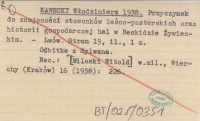 KAWECKI Włodzimierz 1938 Przyczynek do znajomości stosunków leśno-pasterskich oraz historii gospodarczej hal w Beskidzie Żywieckim.