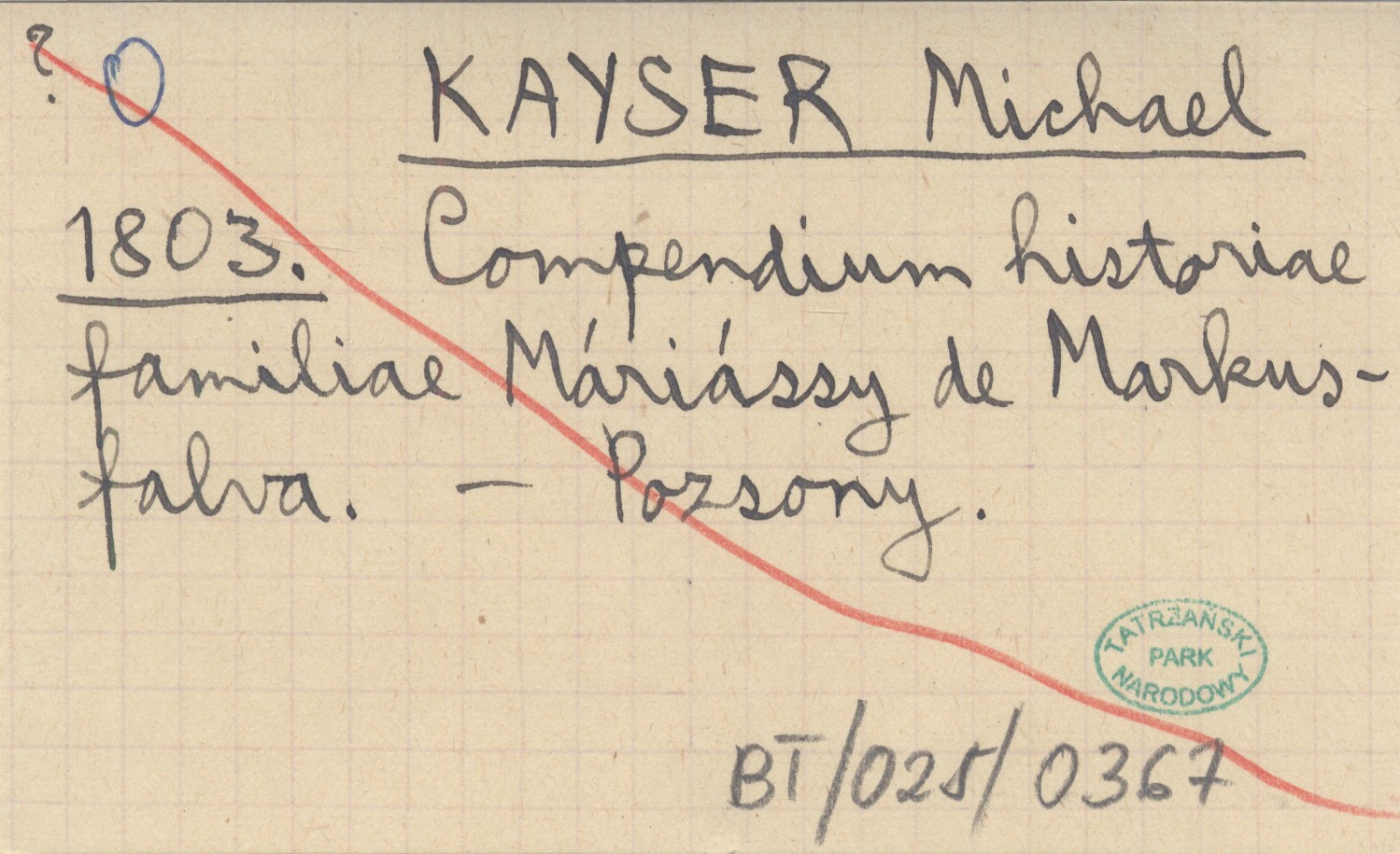 KAYSER Michael 1803 Compedium historiae familiae Máriássy de Markusfalva.