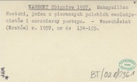 KAWECKI Zbigniew 1957 Maksymilian Nowicki, jeden z pierwszych polskich ewolucjonistów i szermierzy postępu.
