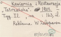 Kawiarnia i Restauracja "Tatrzańska". 1924