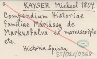 KAYSER Michael 1804 Compedium Historiae familiae Máriássy de Markusfalva ex manuscripto etc.