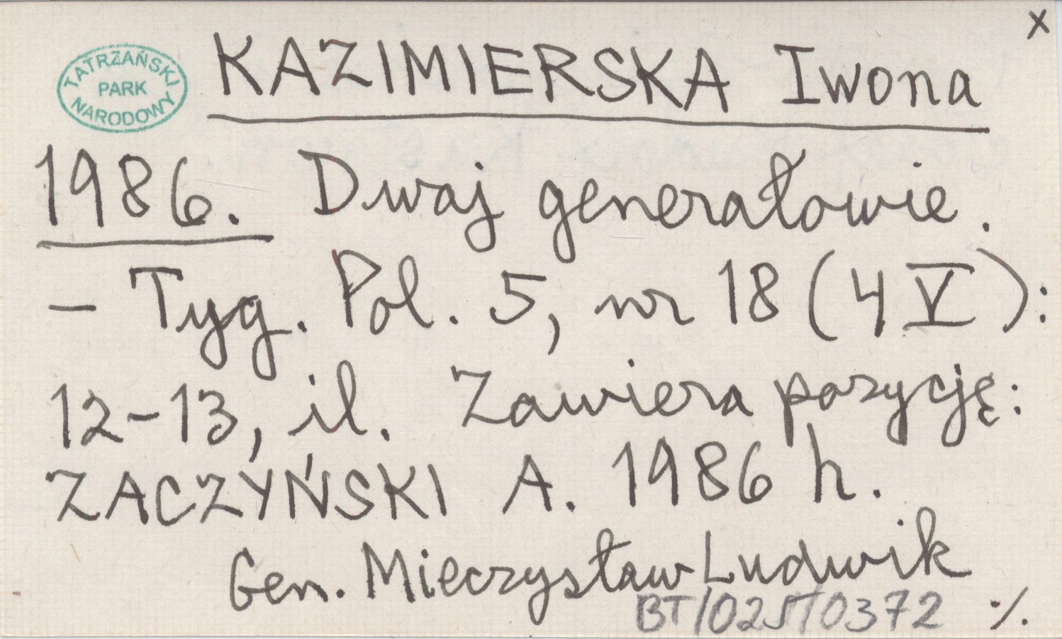 Tygodnik Polski, 5, nr 18 (4 V): 12-13, il. Generał Mieczysław Ludwik Boruta-Spiechowicz i generał Józef Rudolf Kustroń. Zawiera pozycję: ZACZYŃSKI A. 1986 h. ZACZYŃSKI A. 1986 h