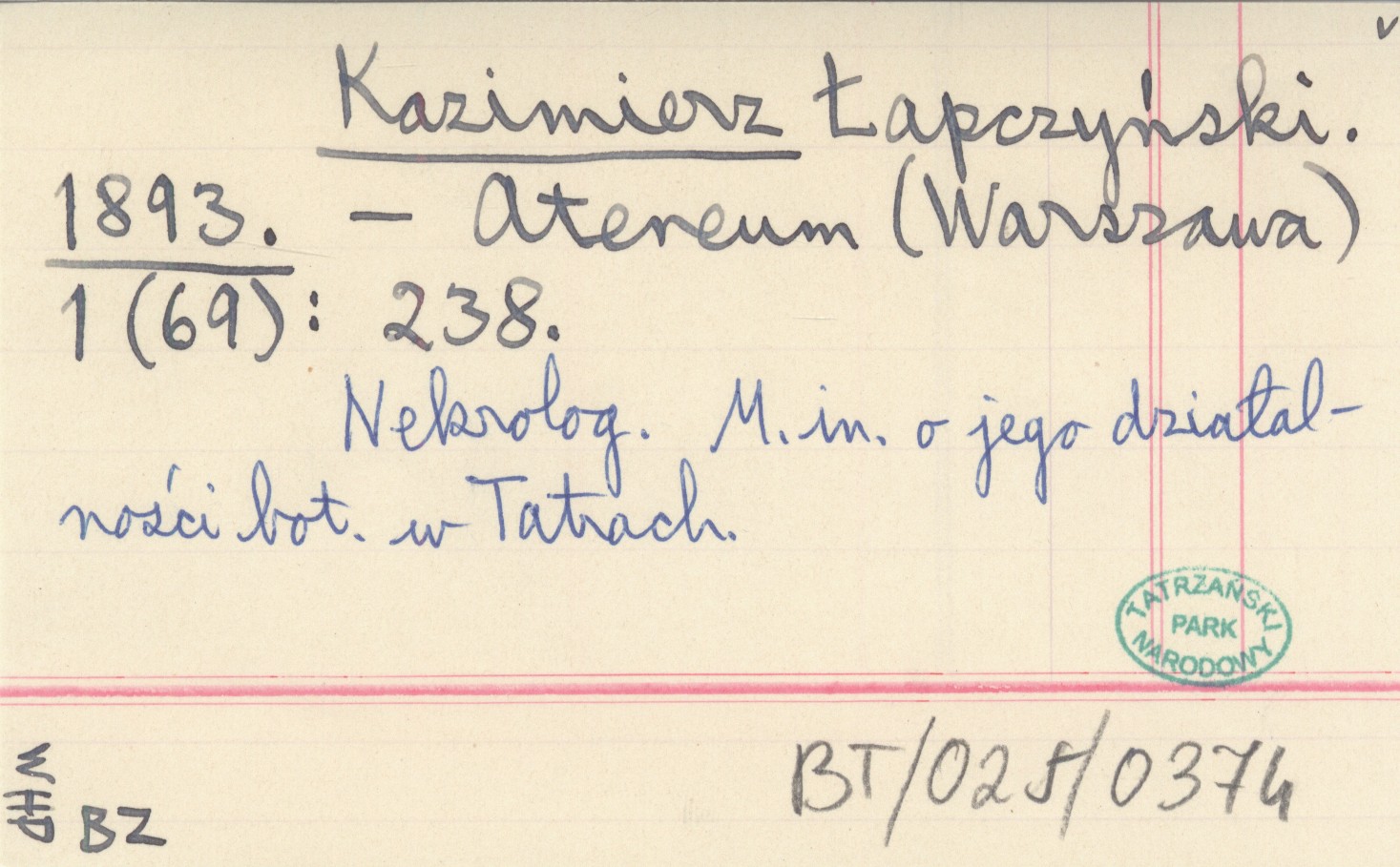 Ateneum (Warszawa) , 1 (69): 238. Nekrolog. M. i. o jego działalności botanicznej w Tatrach.