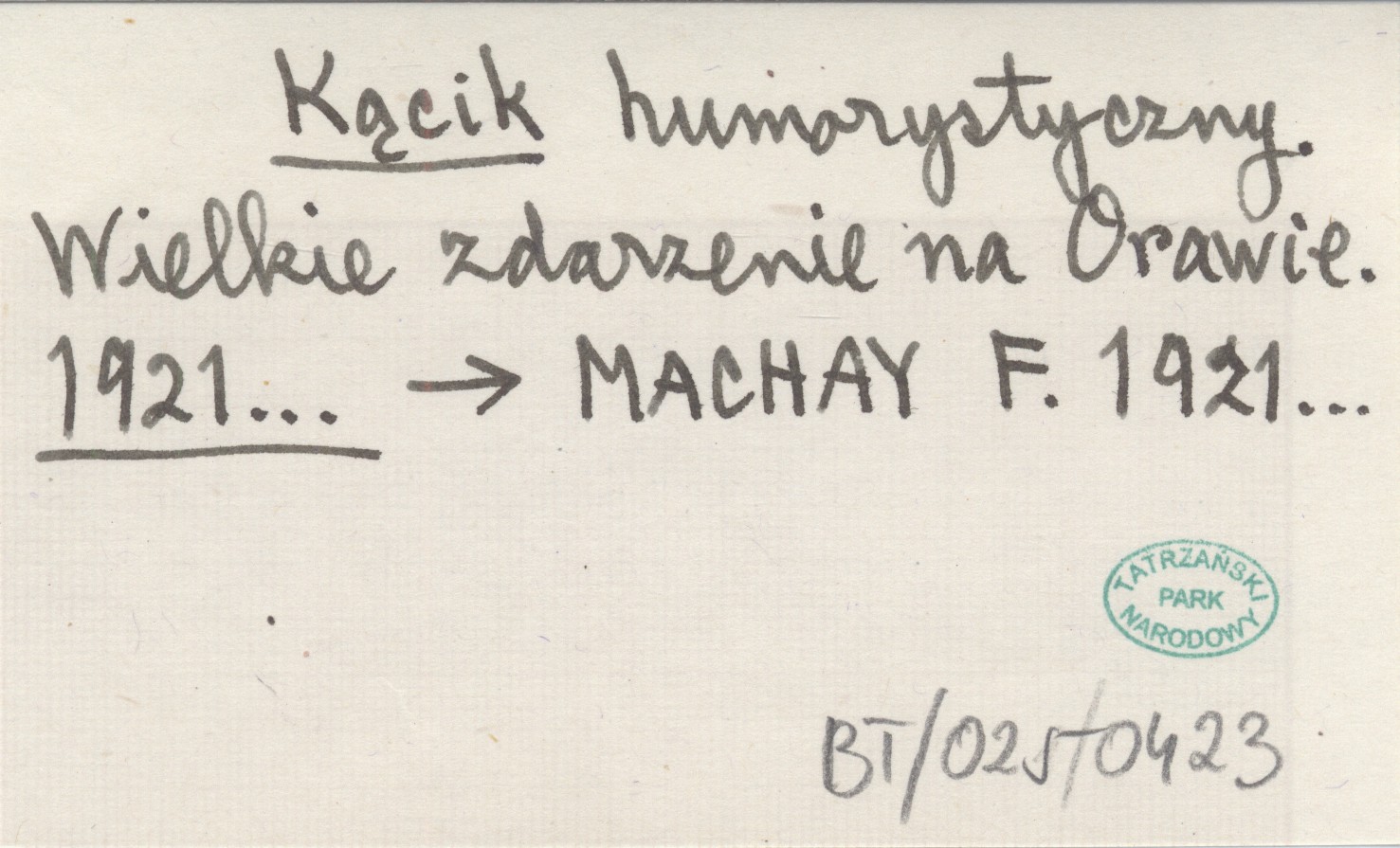 Kącik humorystyczny. Wielkie zdarzenie na Orawie. 1921...