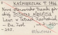 KAŹMIERCZAK T. 1966 Nowe stanowisko traszki górskiej Triturus alpestris Laur. w Tatrach Zachodnich.