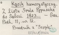 Kącik humorystyczny. Z listu Srula Pępuszka do Salczi. 1923...