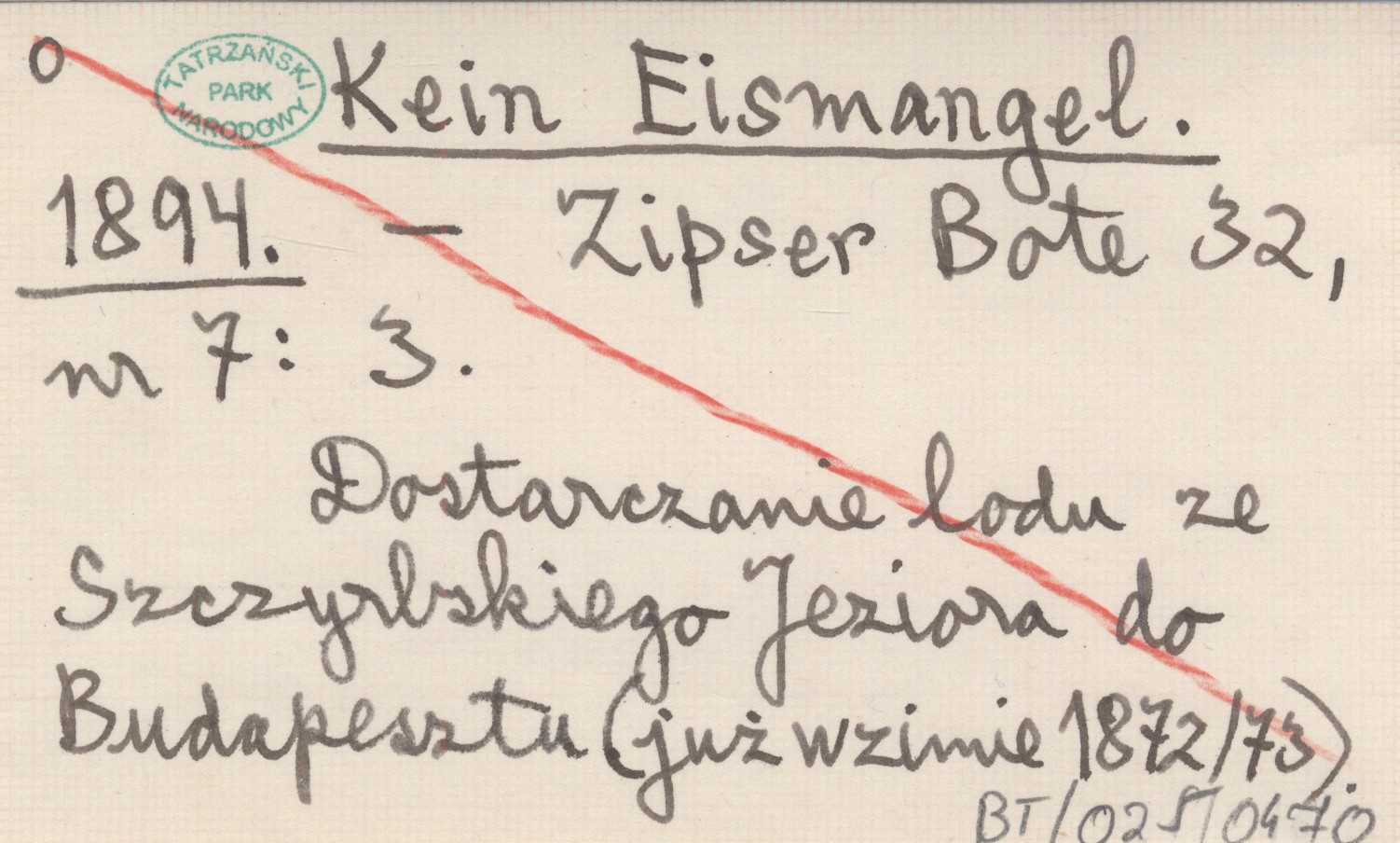 Zipser Bote, 32, nr 7: 3. Dostarczanie lodu ze Szczyrbskiego Jeziora do Budapesztu (już w zimie 1872/73).