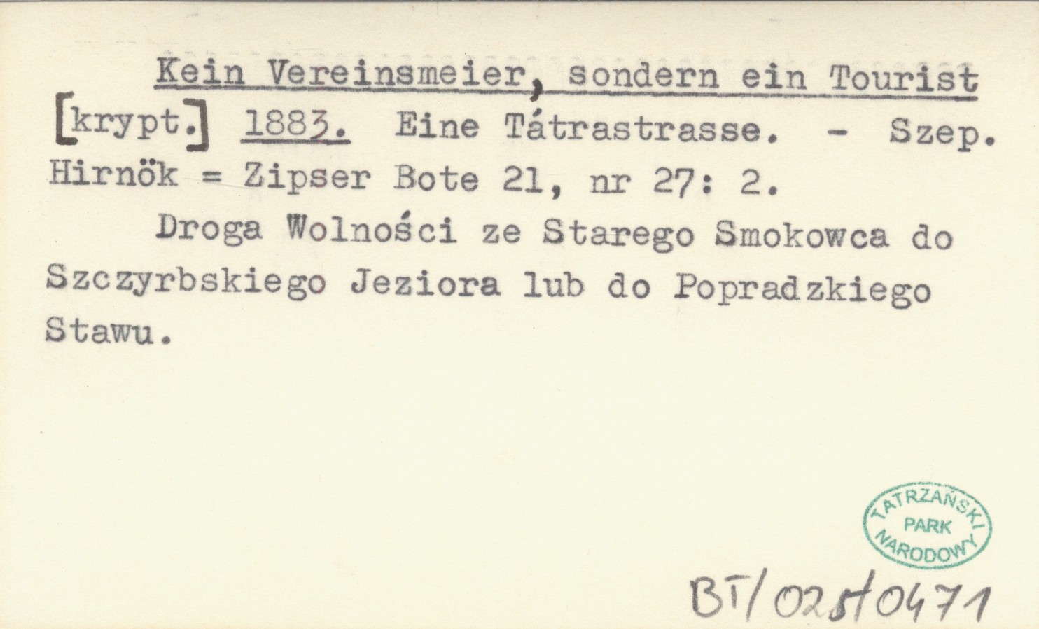 Kein Vereinsmeier, sondern ein Tourist 1883 Eine Tátrastrasse.