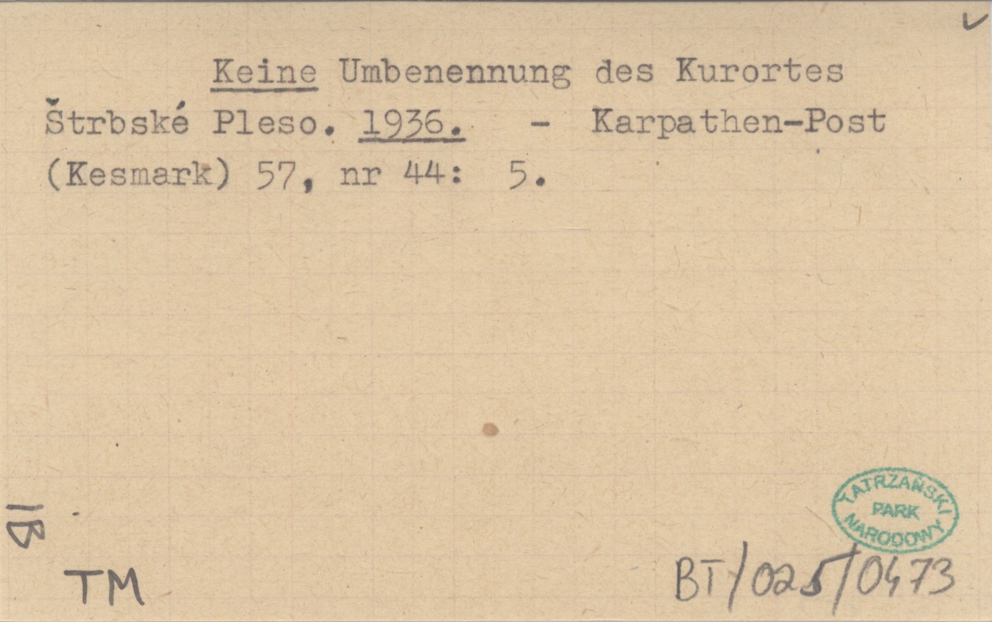 Keine Umbenennung des Kurortes Štrbské Pleso. 1936
