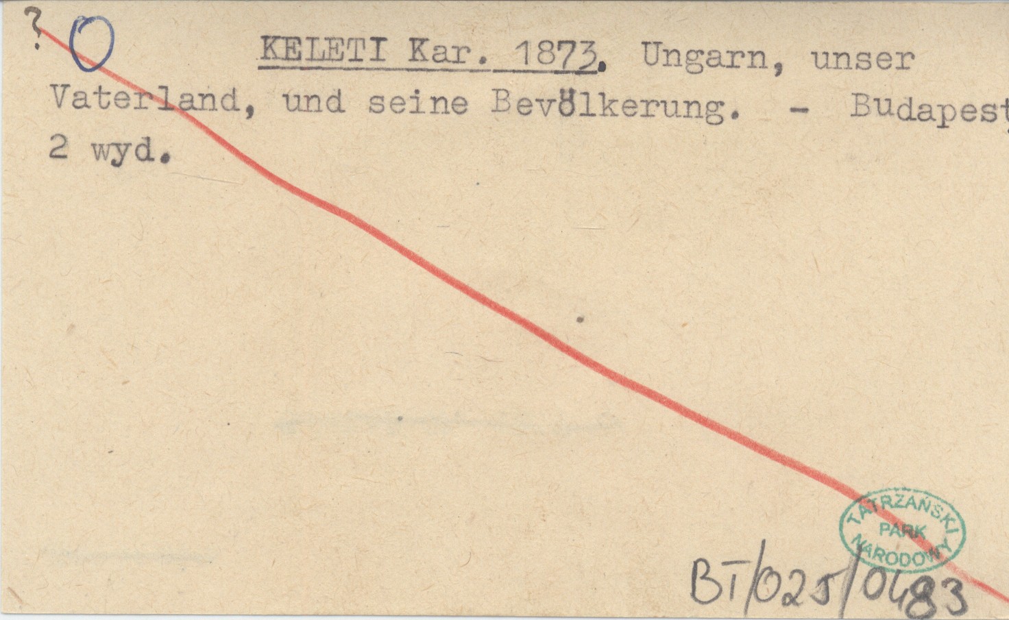 KELETI Kar. 1873 Ungarn, unser Vaterland, und seine Bevölkerung.