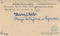 KÉLER Tibor 1937 Korrespondenzen. Kesmark, am 7. Juni 1937.
