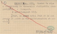 KELETI Kár. 1871 Hazánk és népe a közgazdaság és társadalmi statisztika szempontjából.