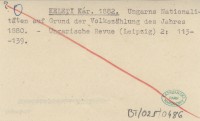 KELETI Kár. 1882 Ungarns Nationalitäten auf Grand der Volkszählungs des Jahres 1880.