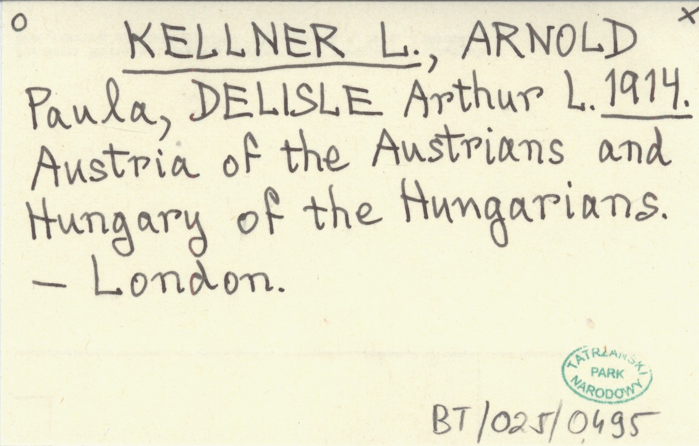 KELLNER L. ARNOLD, Paula. ; DELISLE, Arthur L. ; 1914 Austria of the Austrians and Hungary of the Hungarians.