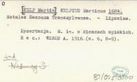 KELPIUS Martinus [KELP Martin] 1684 Natales Saxonum Transsylvanae.