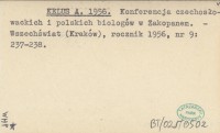 KELUS A. 1956 Konferencja czechosłowackich i polskich biologów w Zakopanem.