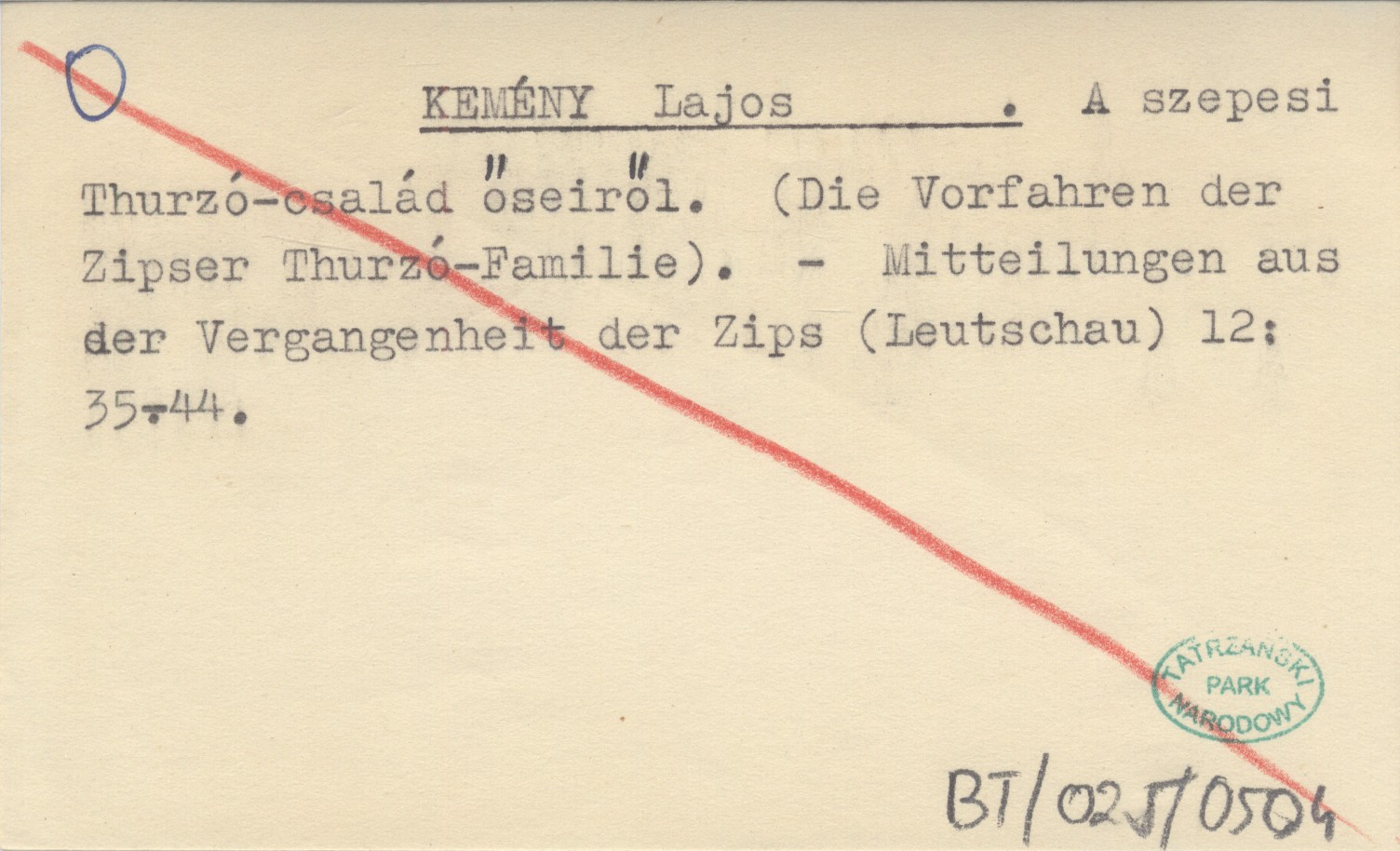 KEMÉNY Lajos A szepesi Thurzó-család őseiről. (Die Vorfahren der Zipser Thurzó-Familie).