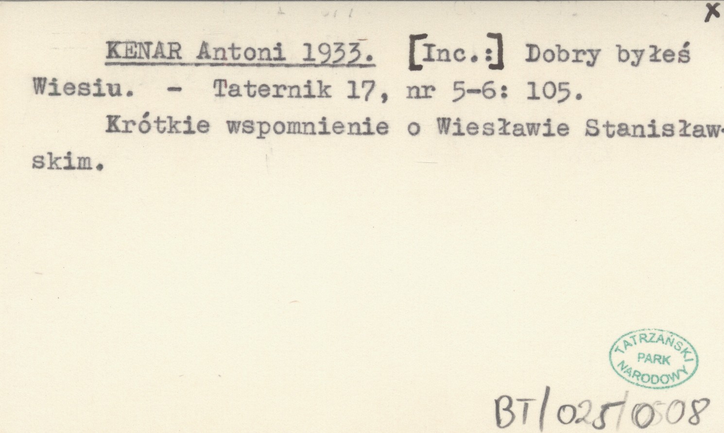Taternik, 17, nr 5-6: 105. [Inc.:]. Krótkie wspomnienie o Wiesławie Stanisławskim.