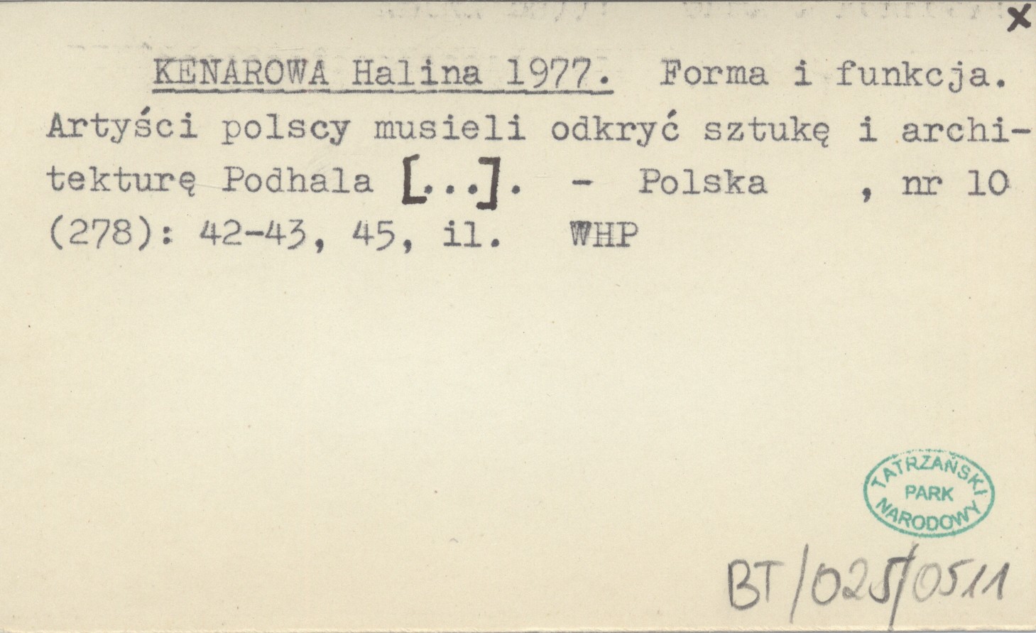 KENAROWA Halina 1977 Forma i funkcja. Artyści polscy musieli odkryć sztukę i architekturę Podhala [...].