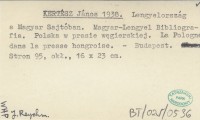 KERTÉSZ János 1938 Lengyelország a Magyar Sajtóban. Magyar-Lengyel Bibliografia. Polska w prasie węgierskiej. La Pologne dans le presse hongroise.