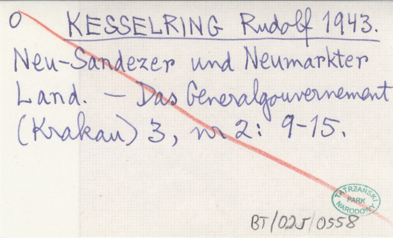 KESSELRING Rudolf 1943 Neu-Sandezer und Neumarkter Land.