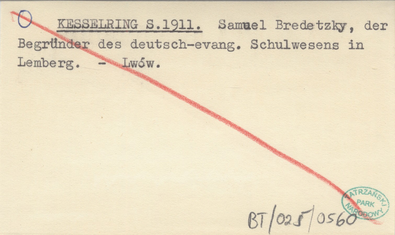 KESSELRING S. 1911 Samuel Bredetzky, der Begründer des deutsch-evang. Schulwesens in Lemberg.