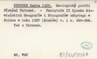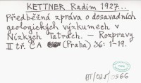 Předběľná zpráva o dosavadních geologických výzkumech v Nízkych Tatrách.