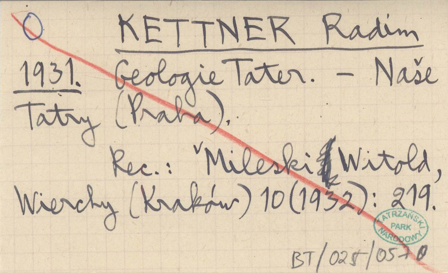 REC: Mileski Witold, Wierchy (Kraków) 10 (1932): 219.