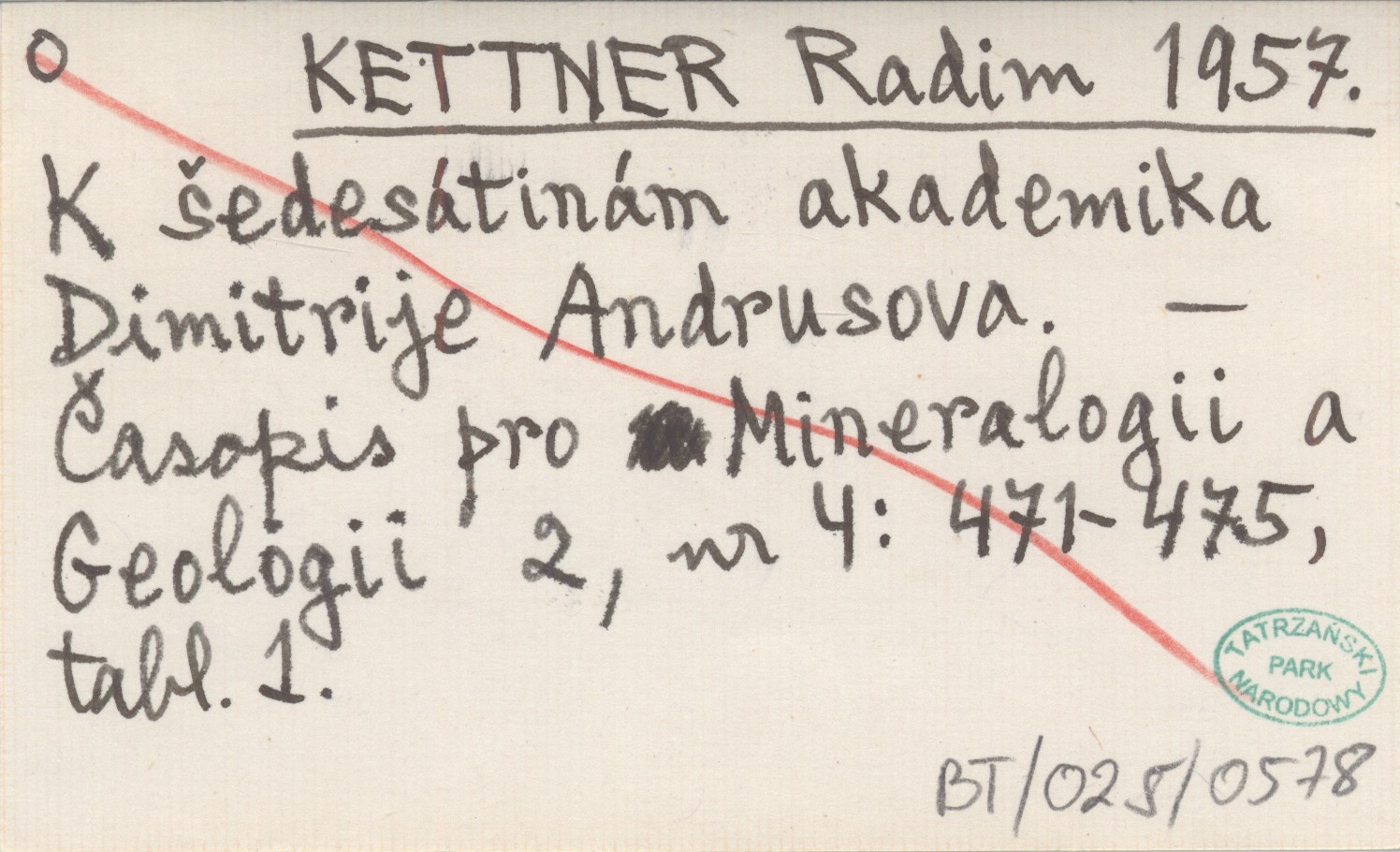 KETTNER Radim 1957 K šedesátinám akademika Dimitrije Andrusova.