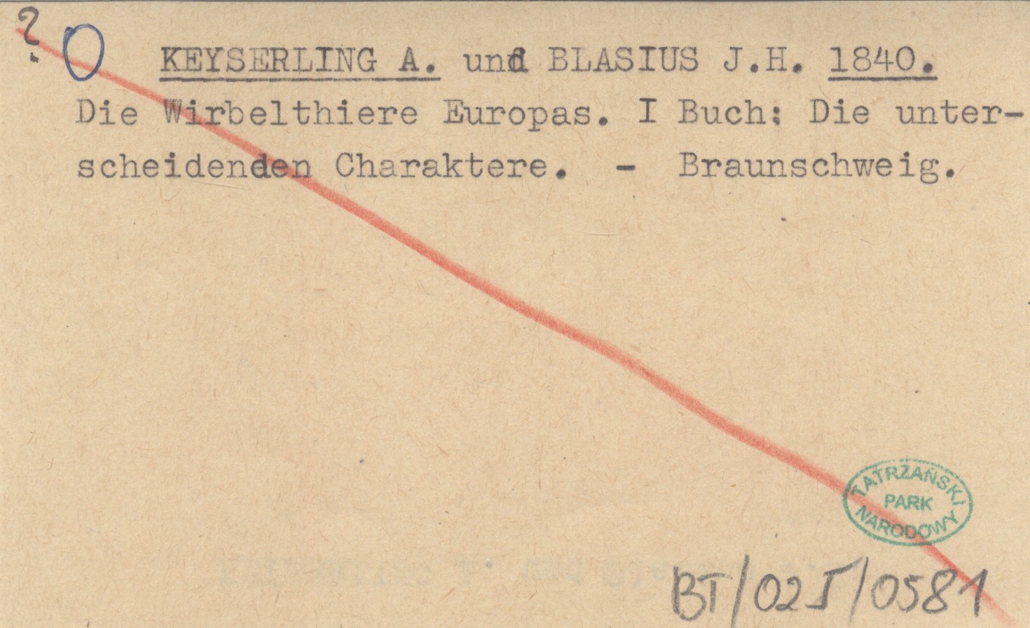 KEYSERLING A. BLASIUS, J. H. ; 1840 Die Wirbelthiere Europas. I. Buch: Die unterscheidenden Charaktere.
