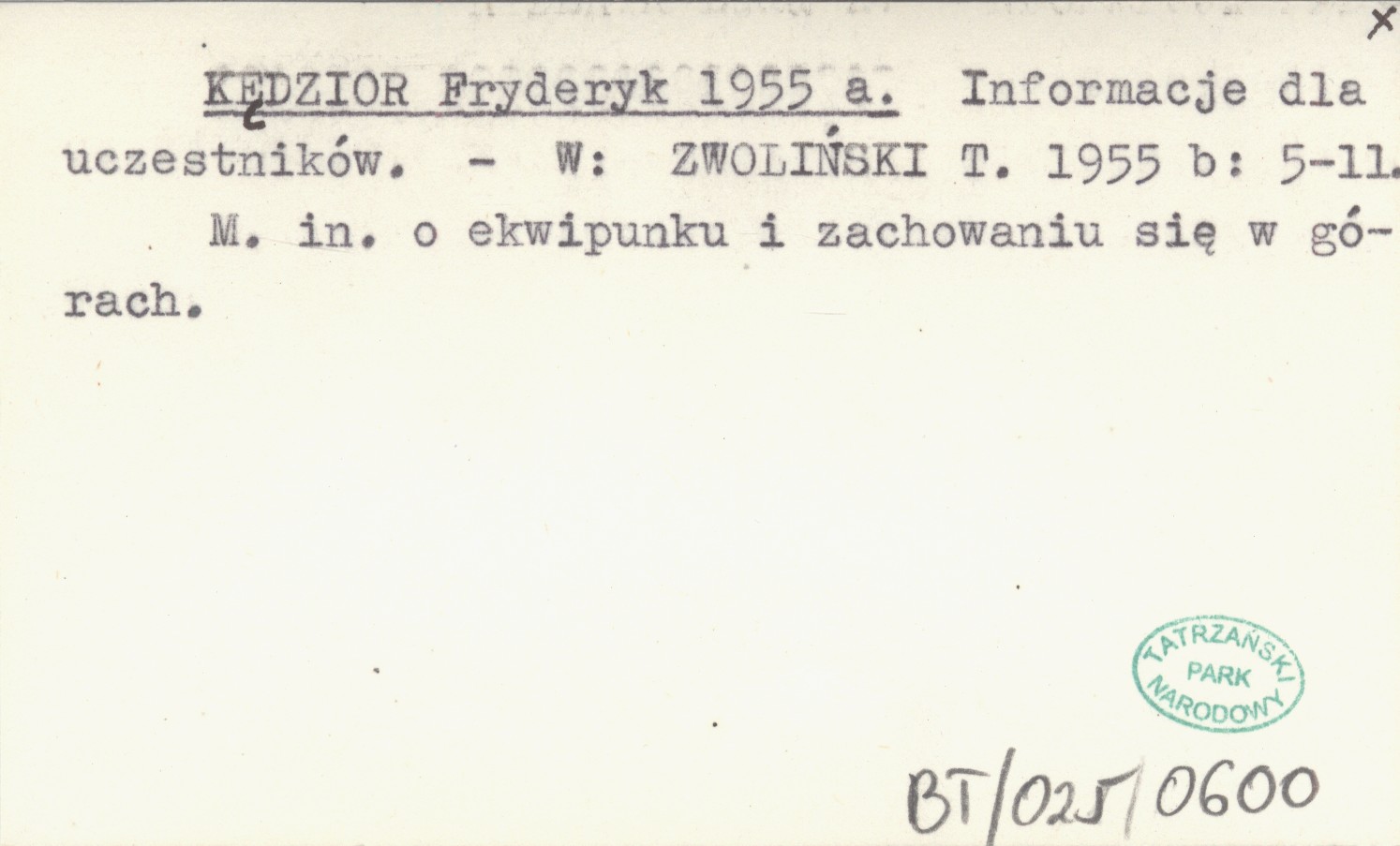 ZWOLIŃSKI T. 1955 b: 5-11. , M. in. o ekwipunku i zachowaniu się w górach.