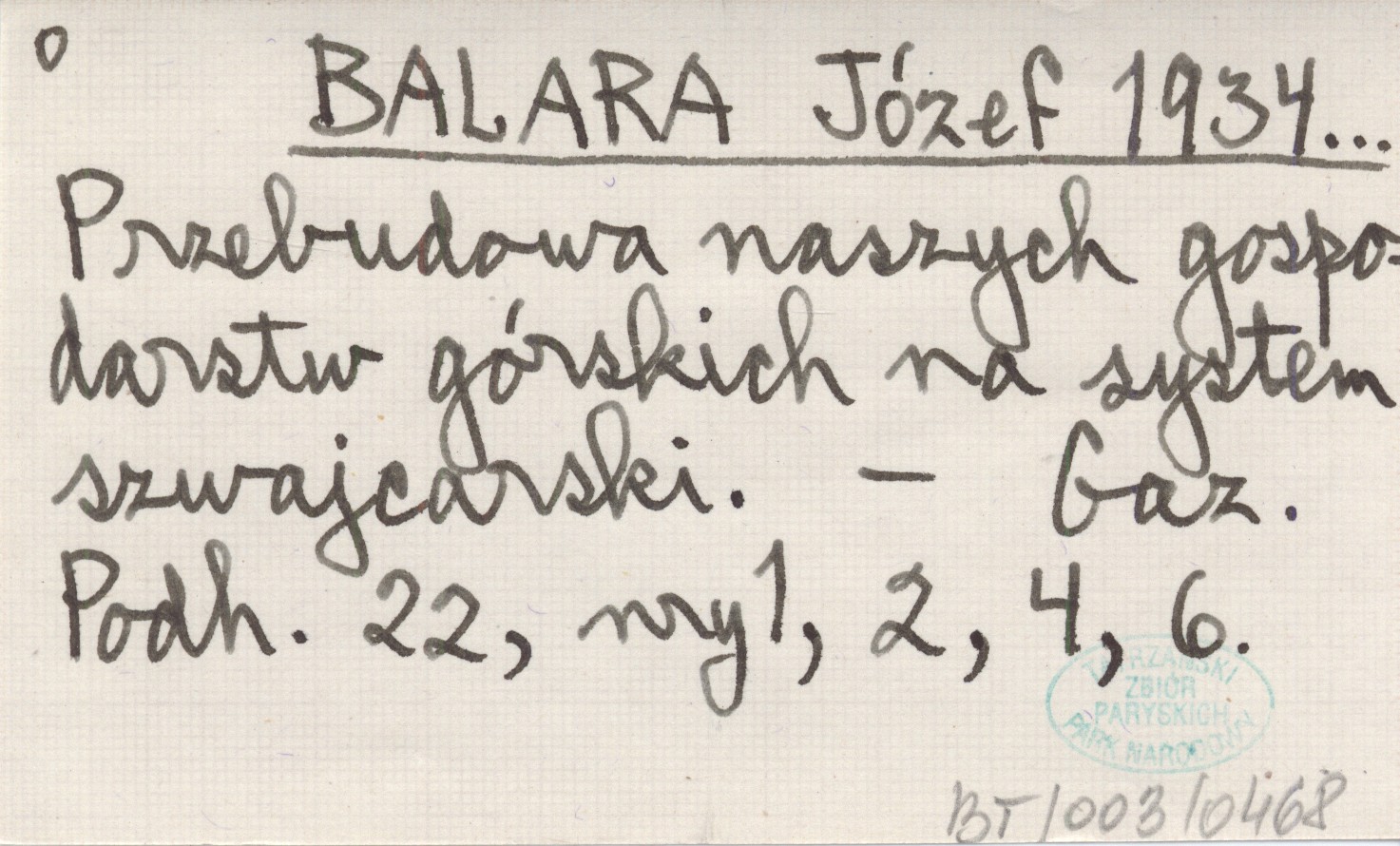 BALARA Józef 1934... Przebudowa naszych gospodarstw górskich na system szwajcarski.