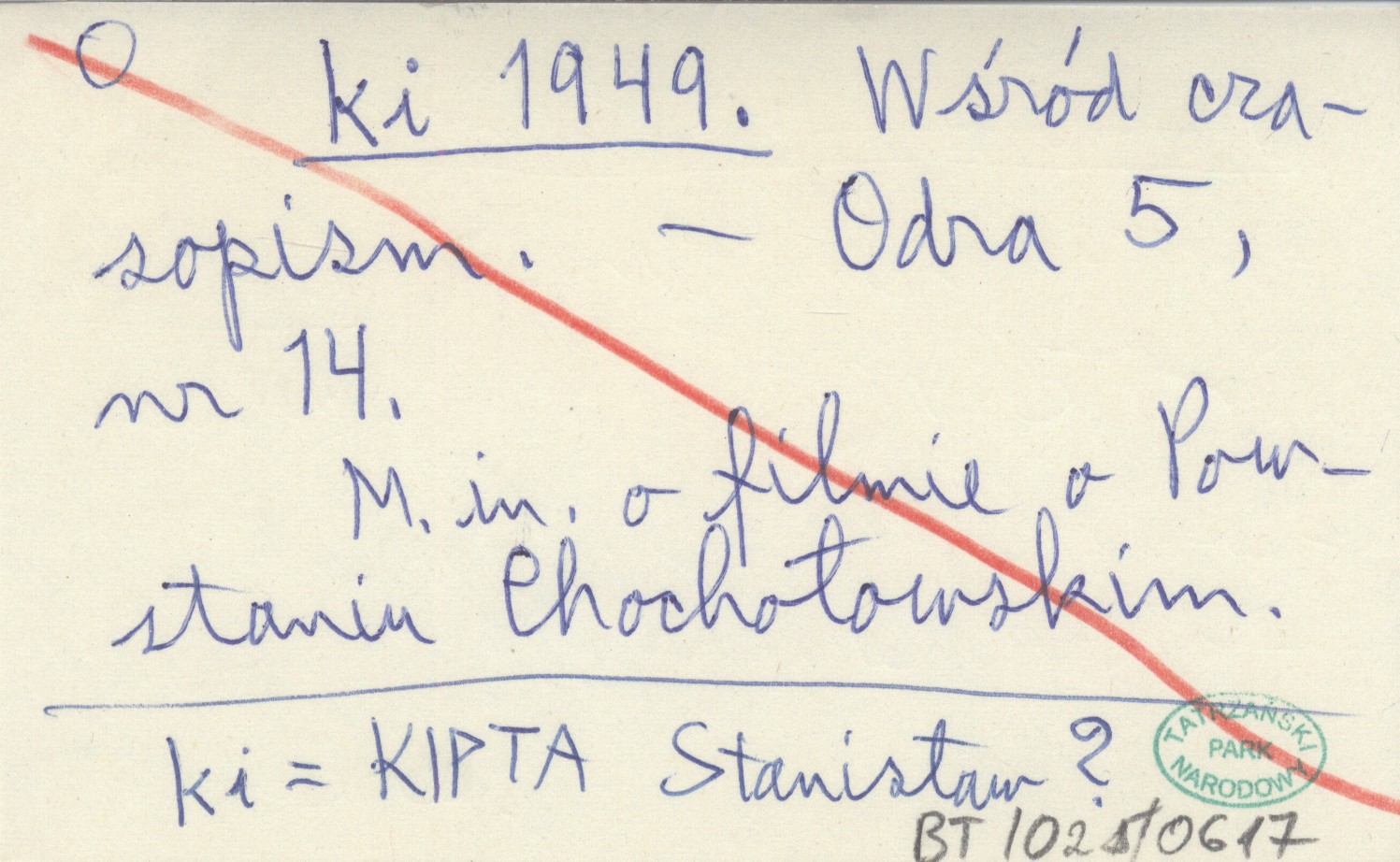 Odra, 5, nr 14. M. in. o filmie o Powstaniu Chochołowskim. ki = KIPTA Stanisław?