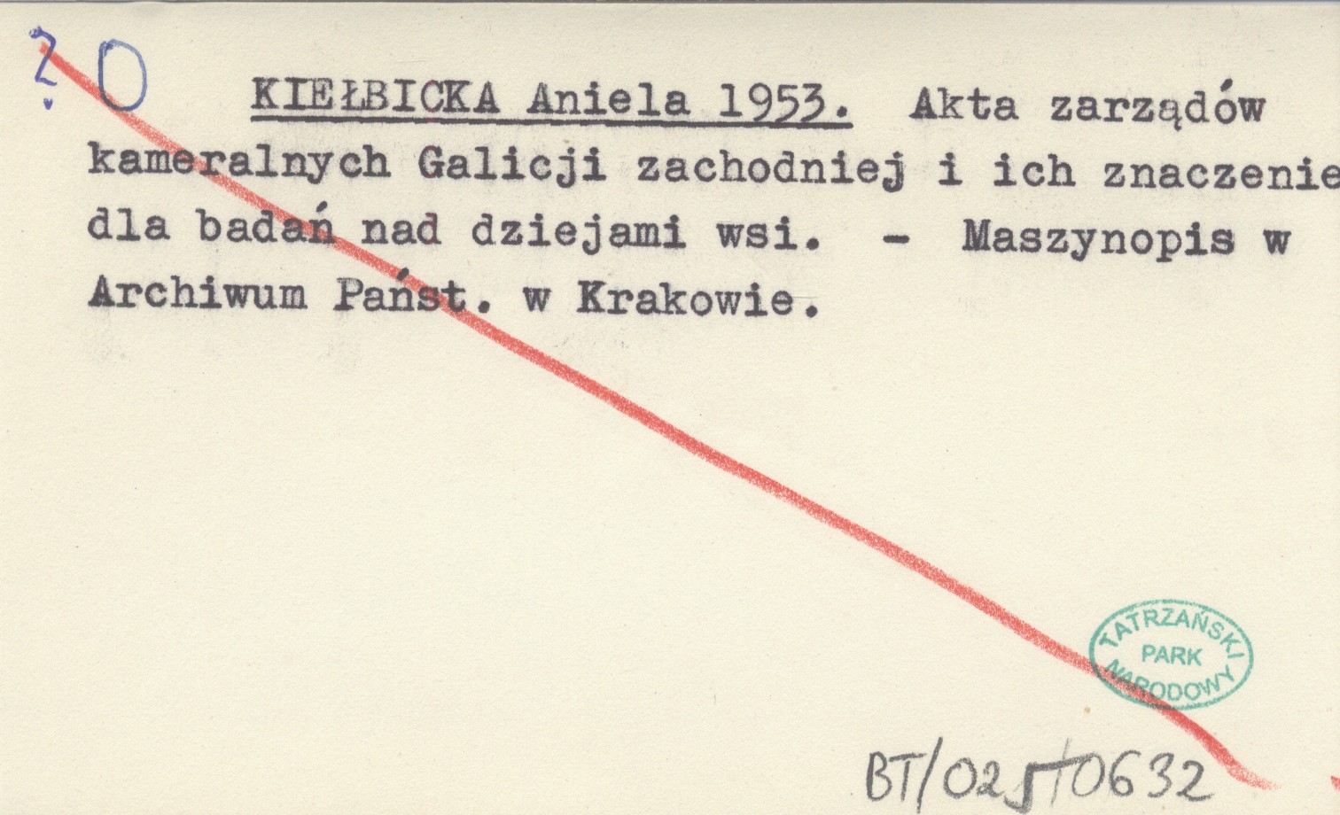 KIEŁBICKA Aniela 1953 Akta zarządów kameralnych Galicji zachodniej i ich znaczenie dla badań nad dziejami wsi.