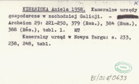 KIEŁBICKA Aniela 1958 Kameralne urzędy gospodarcze w zachodniej Galicji.