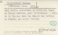 KIEŁCZEWSKI Bohdan WIŚNIEWSKI, Jerzy. ; 1978... Bark beetle acarofauna in different types of forest habitat, part. IV. Oribatei.