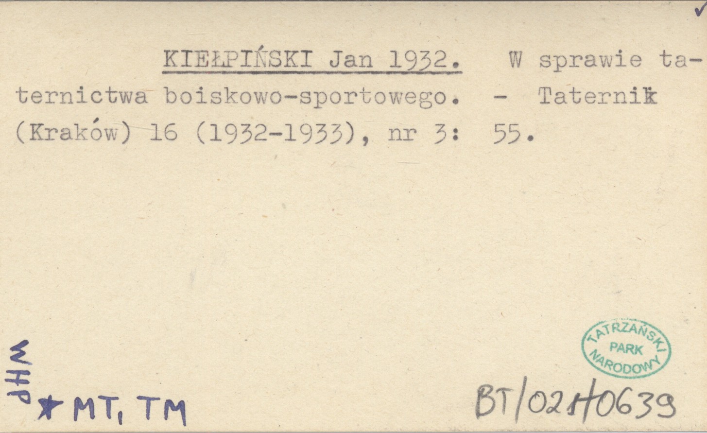 KIEŁPIŃSKI Jan 1932 W sprawie taternictwa boiskowo-sportowego.