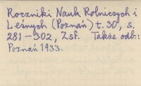 Roczniki Nauk Rolniczych i Leśnych (Poznań) , T. 30: 281-302, Zsf. Także odb.: Poznań 1933.