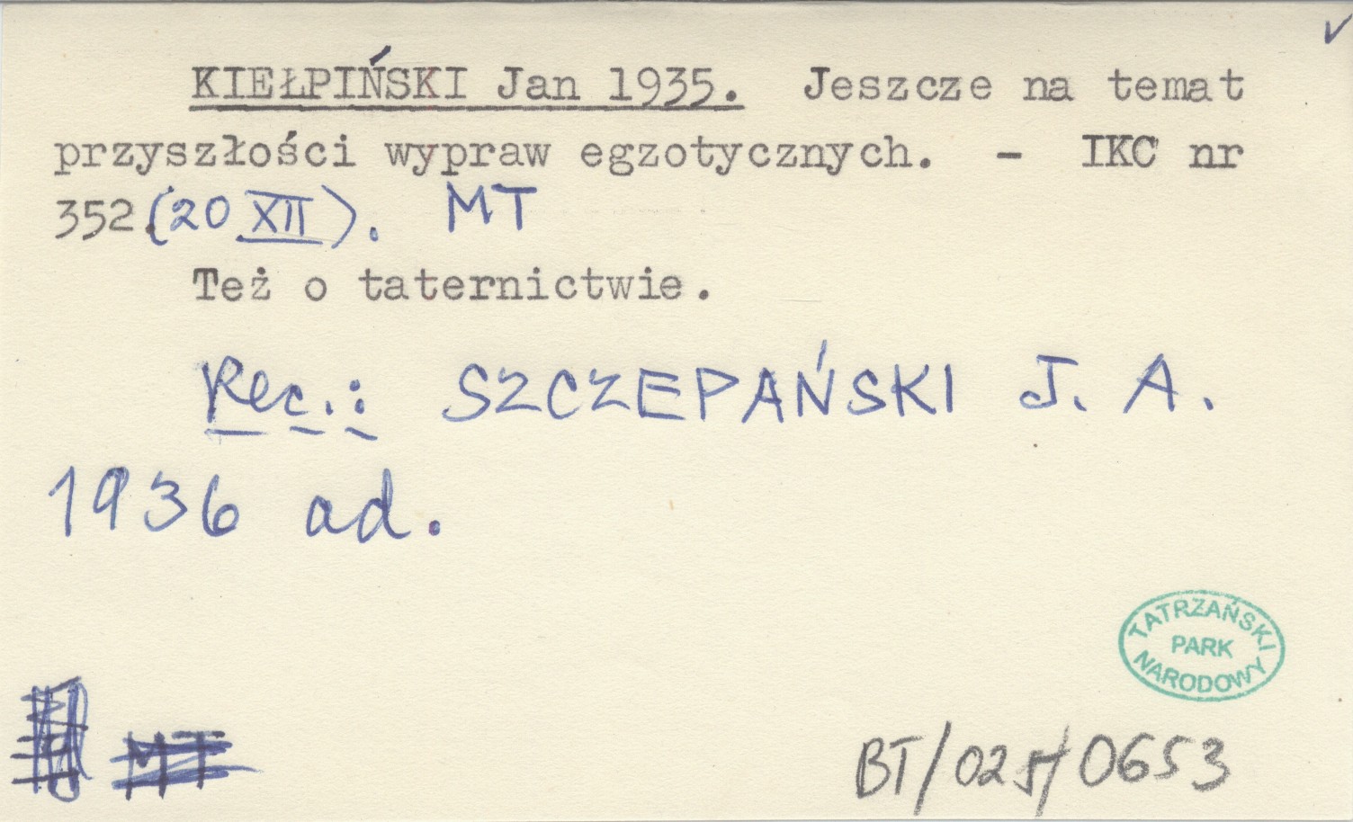 KIEŁPIŃSKI Jan 1935 Jeszcze na temat przyszłości wypraw egzotycznych.