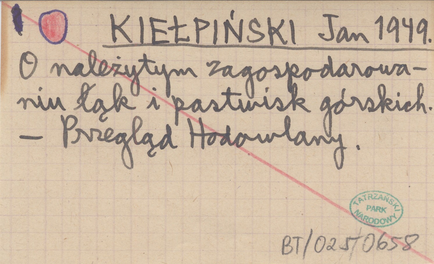 KIEŁPIŃSKI Jan 1949 O należytym zagospodarowaniu łąk i pastwisk górskich.