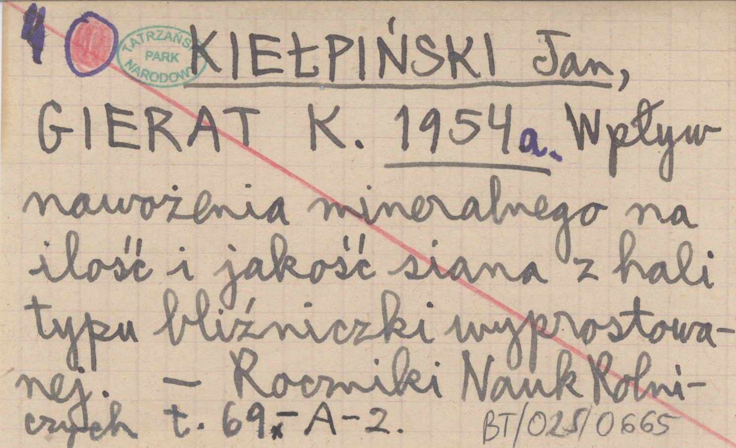KIEŁPIŃSKI Jan GIERAT, K. ; 1954 a Wpływ nawożenia mineralnego na ilość i jakość siana z hali typu bliźniczki wyprostowanej.