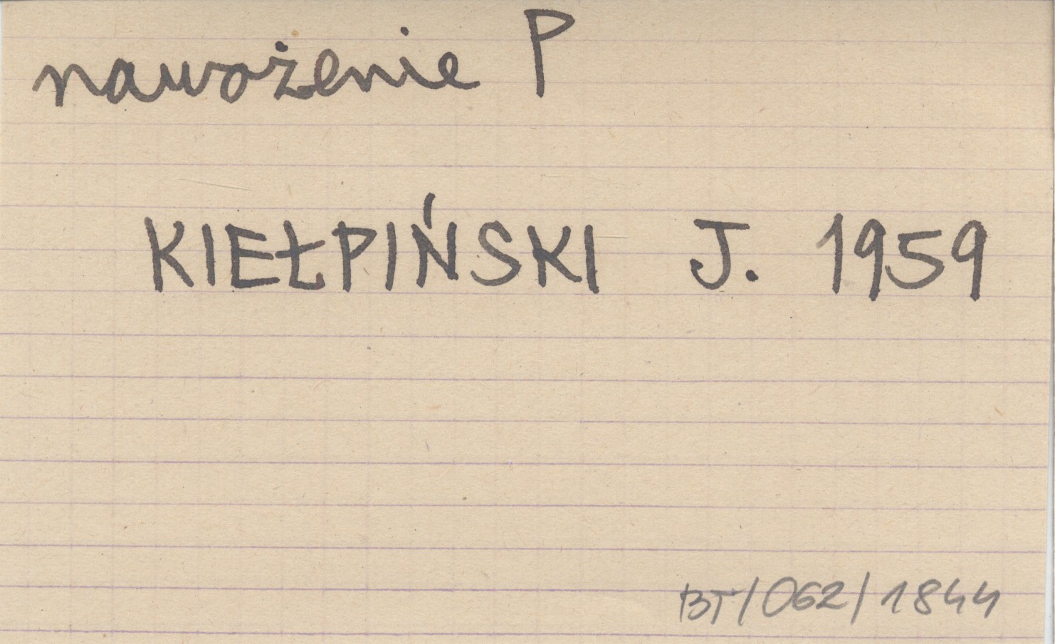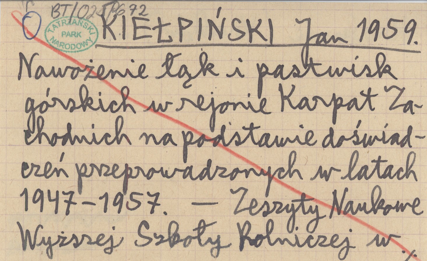 KIEŁPIŃSKI Jan 1959 Nawożenie łąk i pastwisk górskich w rejonie Karpat Zachodnich na podstawie doświadczeń przeprowadzonych w latach 1947-1957.