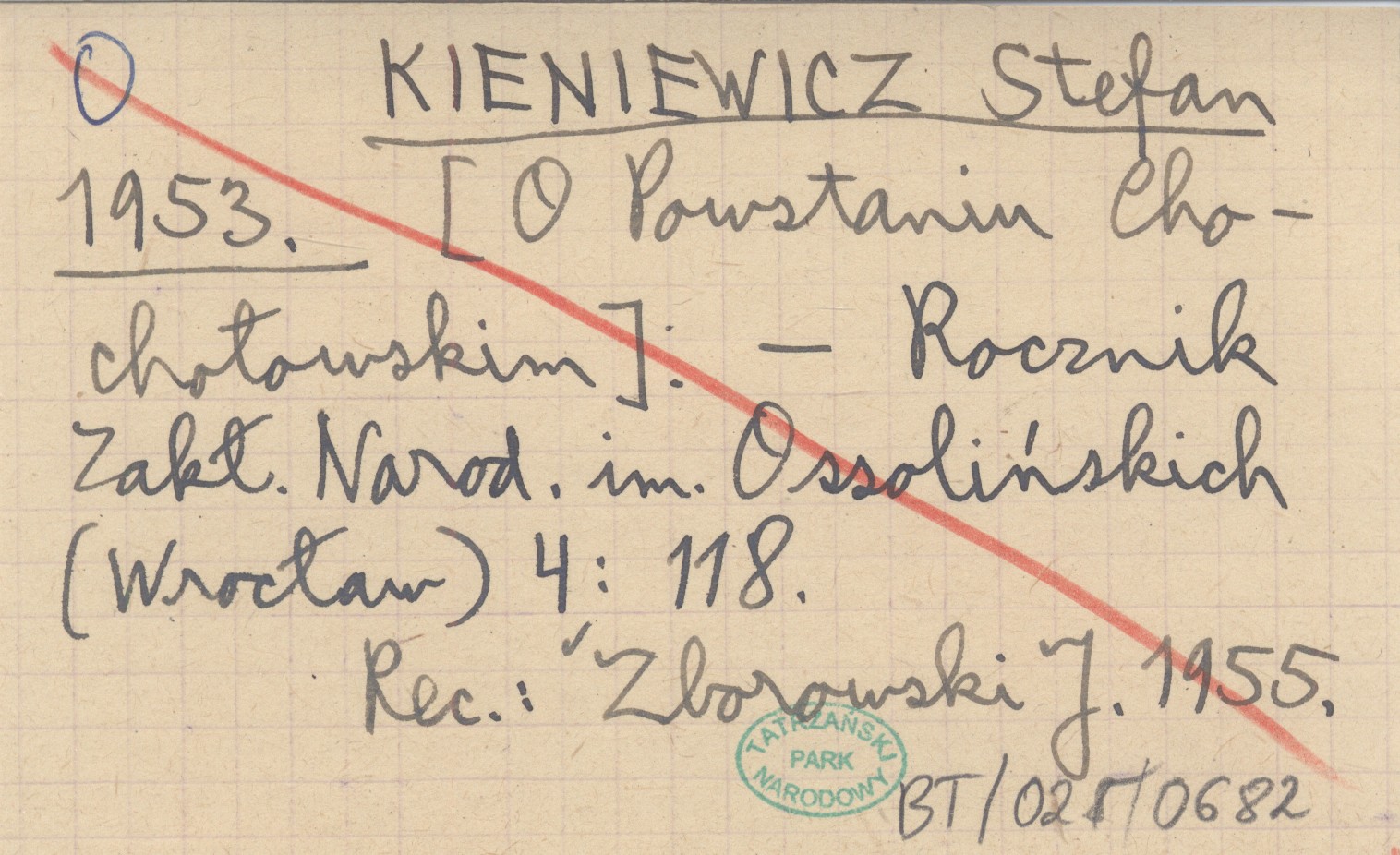 KIENIEWICZ Stefan 1953 [O Powstaniu Chochołowskim].