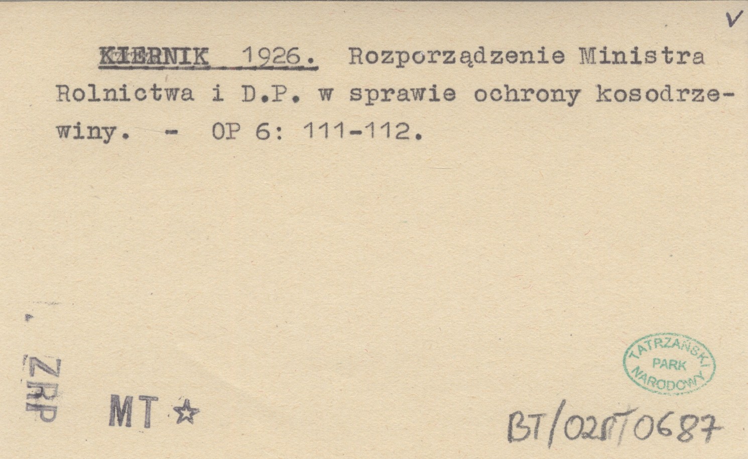 KIERNIK 1926 Rozporządzenie Ministra Rolnictwa i D.P. w sprawie ochrony kosodrzewiny.