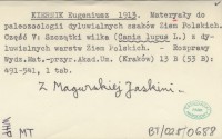 KIERNIK Eugeniusz 1913 Materyały do paleozoologii dyluwialnych ssaków Ziem Polskich. Część V: Szczątki wilka (Canis lupus L.) z dyluwialnych warstw Ziem Polskich.