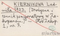 KIERNIKOWA Ludmiła 1923 [Drożyzna i cennik pensjonatowy w Zakopanem].