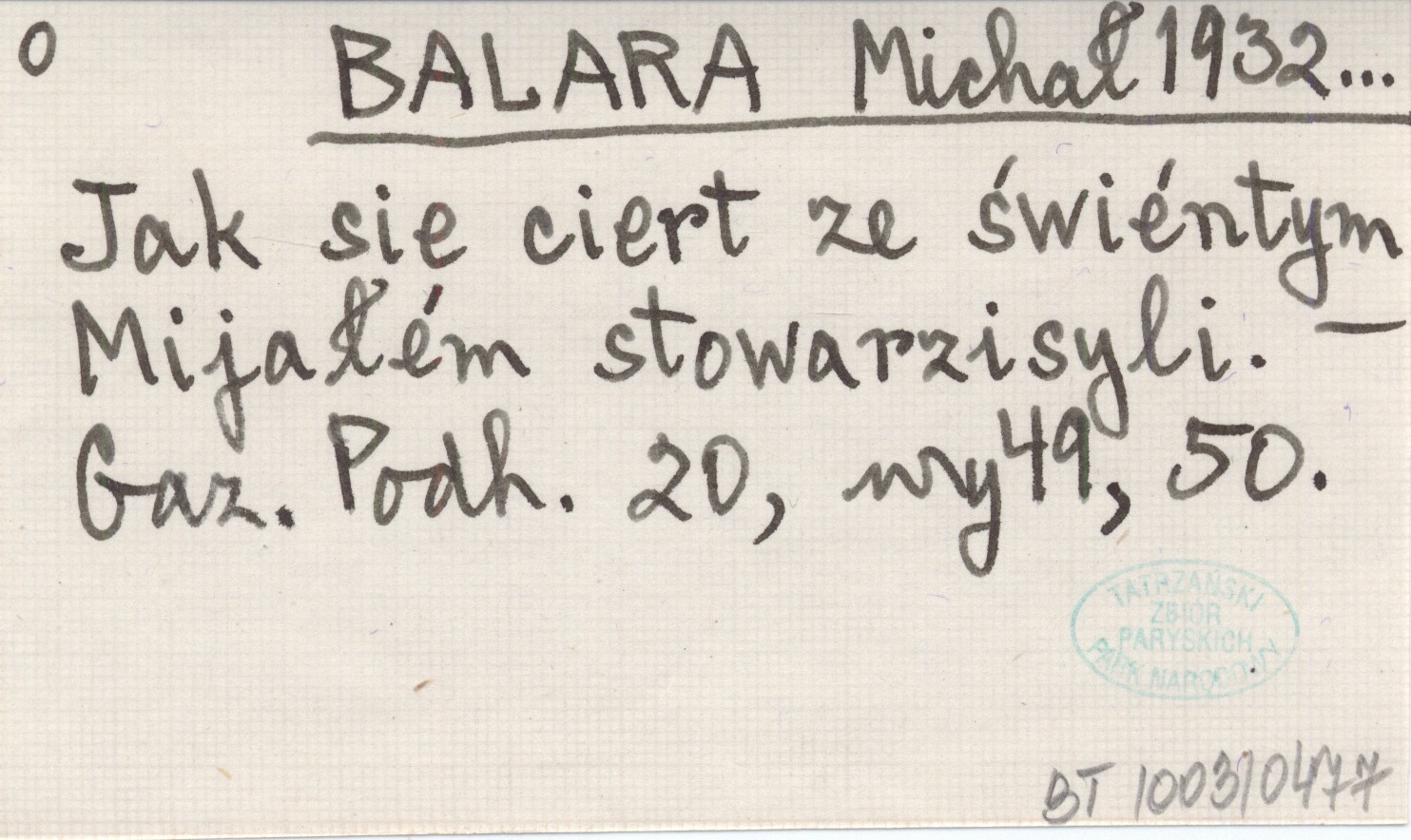 BALARA Michał 1932... Jak sie ciert ze świéntym Mijałém stowarzisyli.