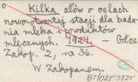 Kilka słów o celach nowo-otwartej stacji dla badania mleka i produktów mlecznych. 1924
