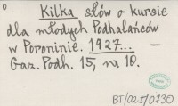 Kilka słów o kursie dla młodych Podhalańców w Poroninie. 1927...